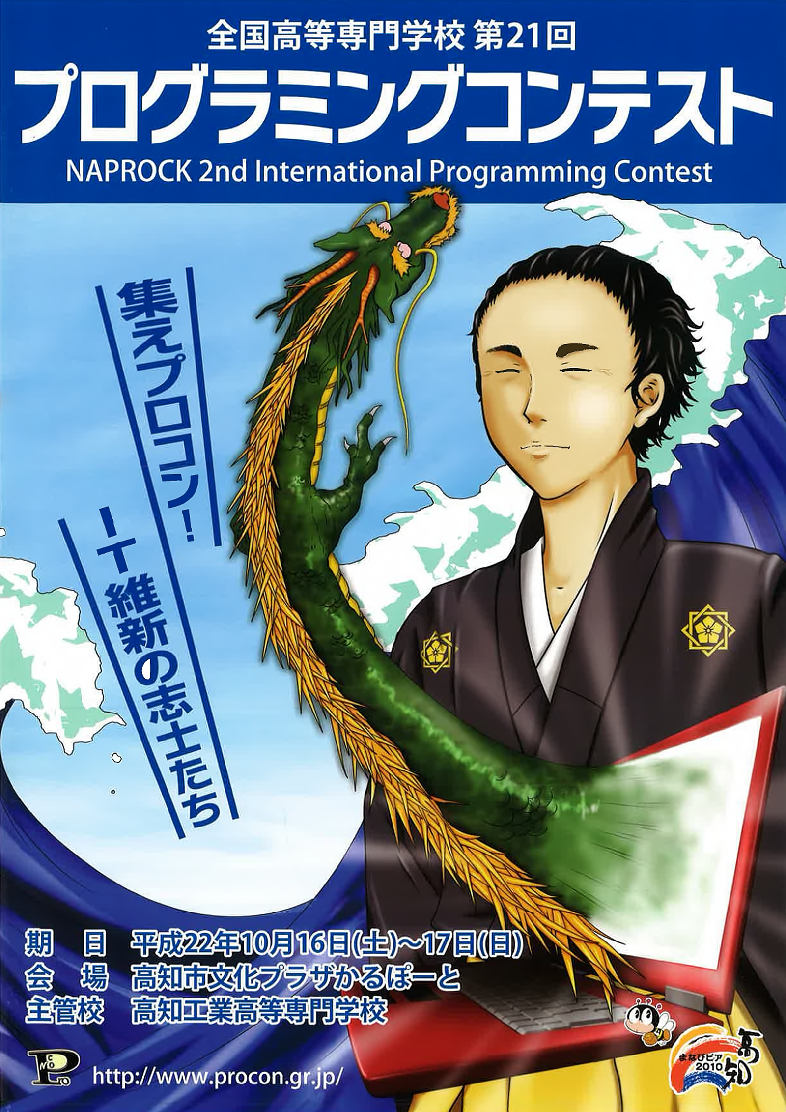 全国高等専門学校第21回プログラミングコンテストを開催します。本コンテストは、高専生が日ごろの学習成果を活かし、情報処理技術におけるアイデアと実現力を競うものです。前回同様、今大会も課題部門・自由部門・競技部門の3部門で作品を募集します。