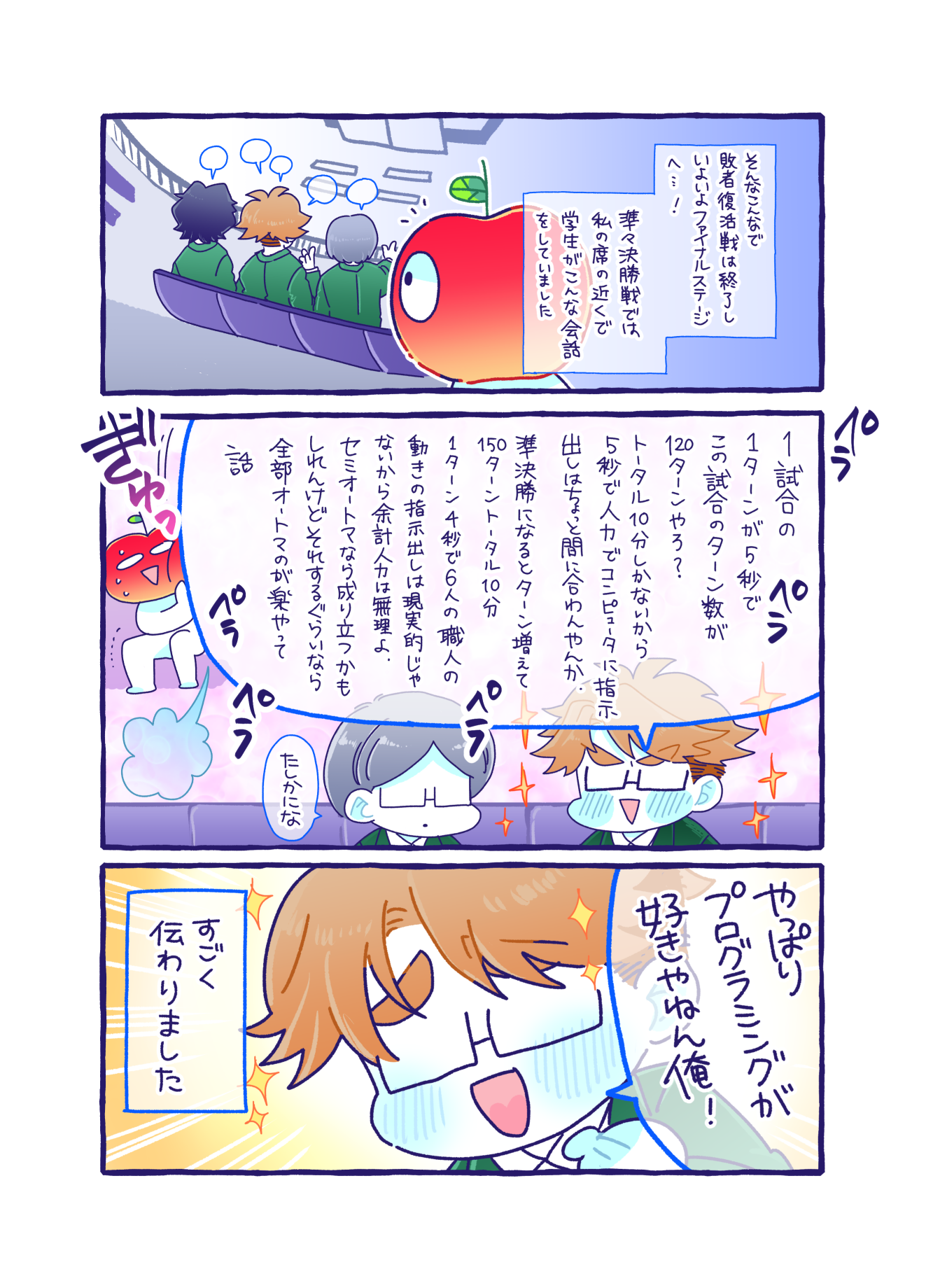 司会者の高田さん、そして私ともどもプログラミングは素人目線なのですが、そんな我々は「AIはいずれ人間より勝るんじゃないか」「コンピュータで全て賄えることがプログラミングに関わる人たちからすれば到達点なんじゃないか」とどこかで感じていると思うのですが、プログラミングやってる方ほど「いやいや、そういうわけではないですね~」という反応なのが面白いなあと感じた大会でもありました。