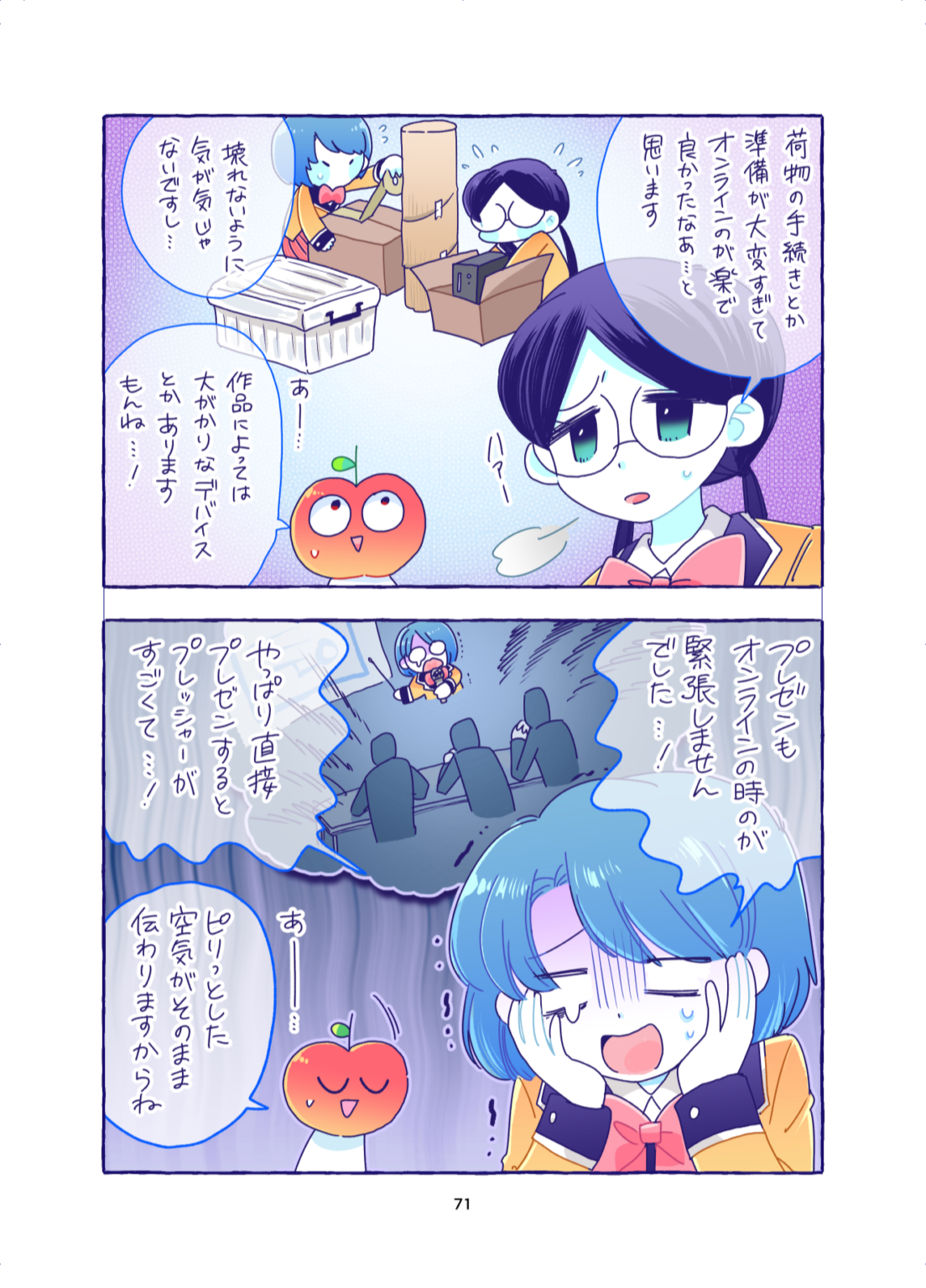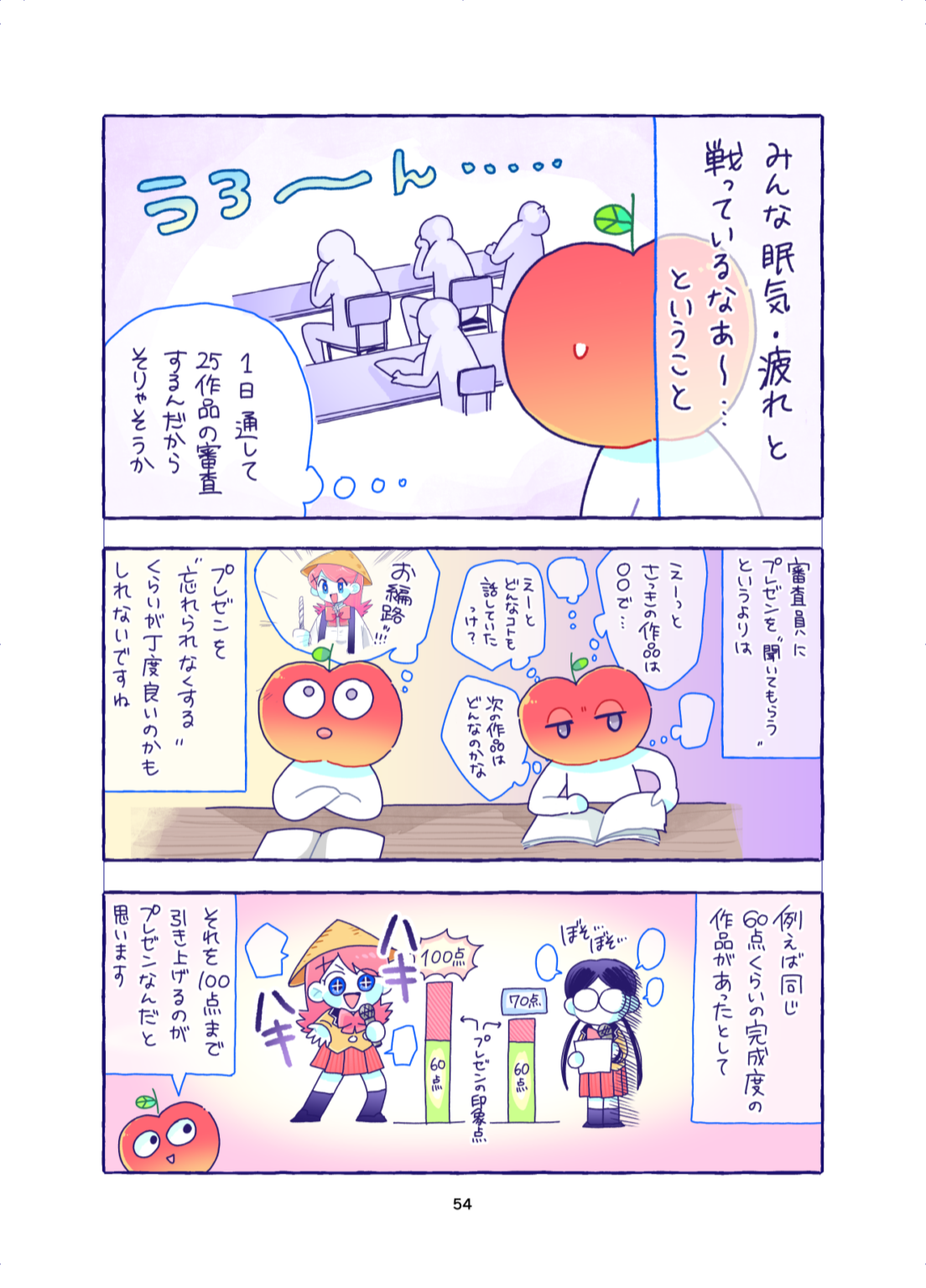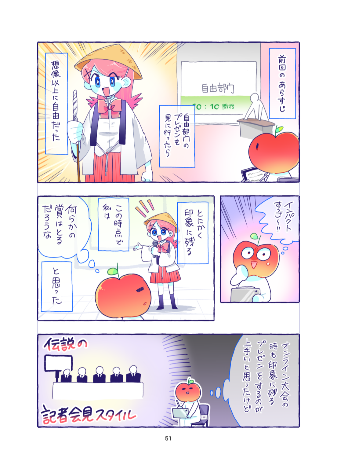 プロコン漫画 トップページ> プロコン漫画 > プロコンレポート2022 第33回群馬大会③ プロコンレポート2022 第33回群馬大会③ メッセージ 「大変お待たせしてしまい申し訳ございません。 群馬大会のレポートはこれで最後となります。 久々の現地大会ということもあって、直に作品を見ることの楽しさを思い出すことのできる大会でした。 学生の熱意に直接触れることも久々だったため、とても楽しかったことが強く印象に残っております。 やっぱりこういう大会はオンラインだけではなく現地に行ってこそだなあと痛感した年でした。」