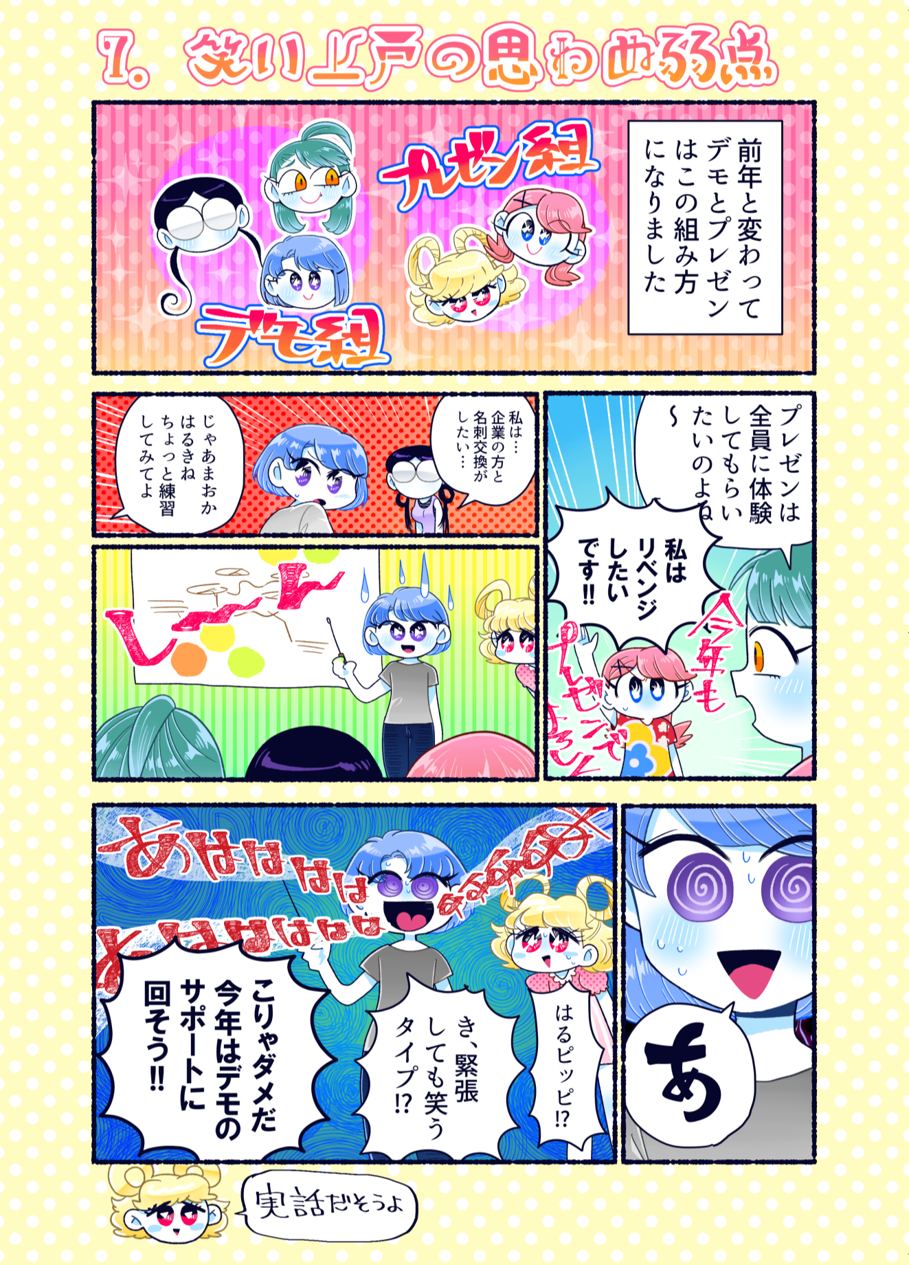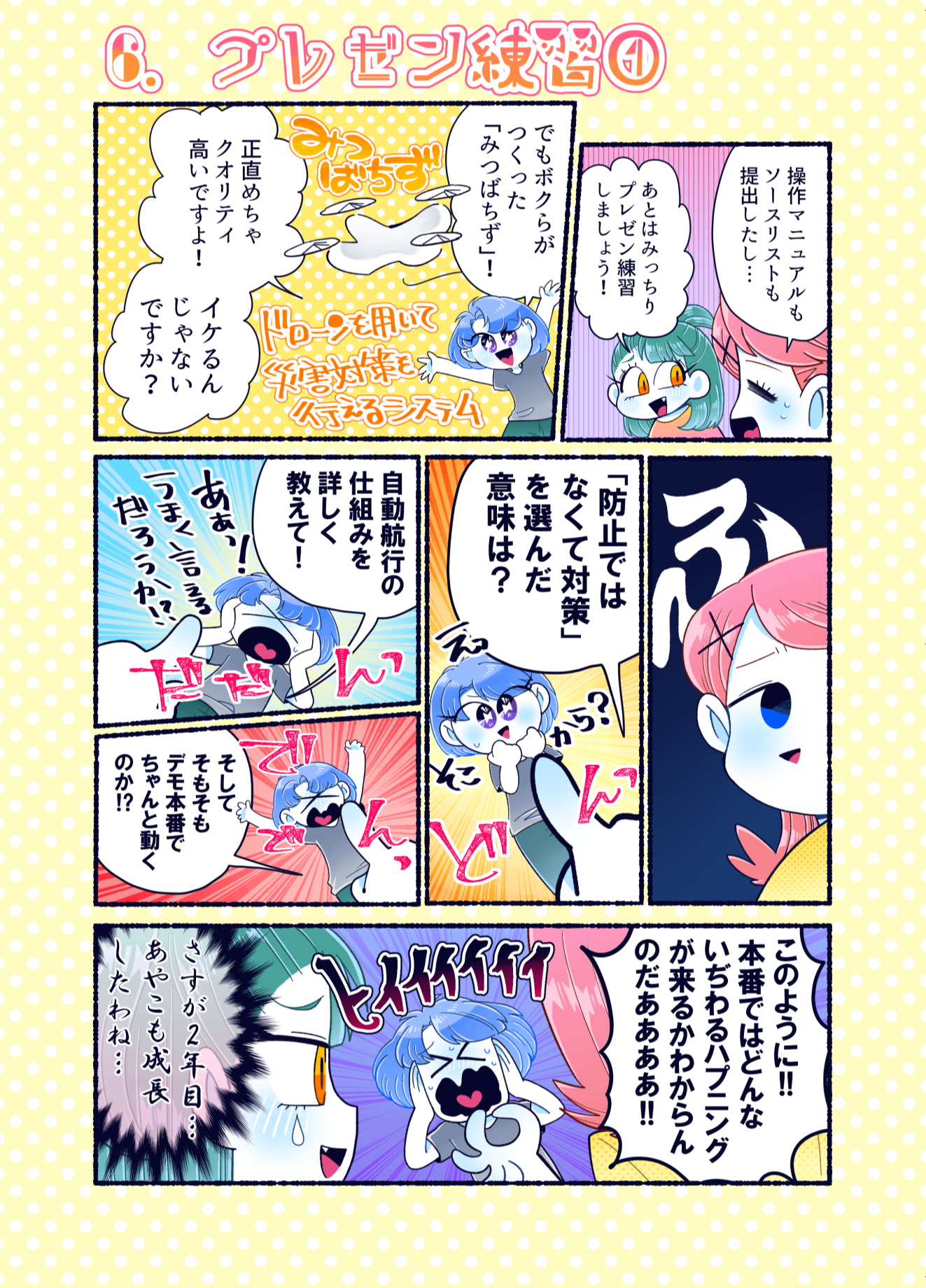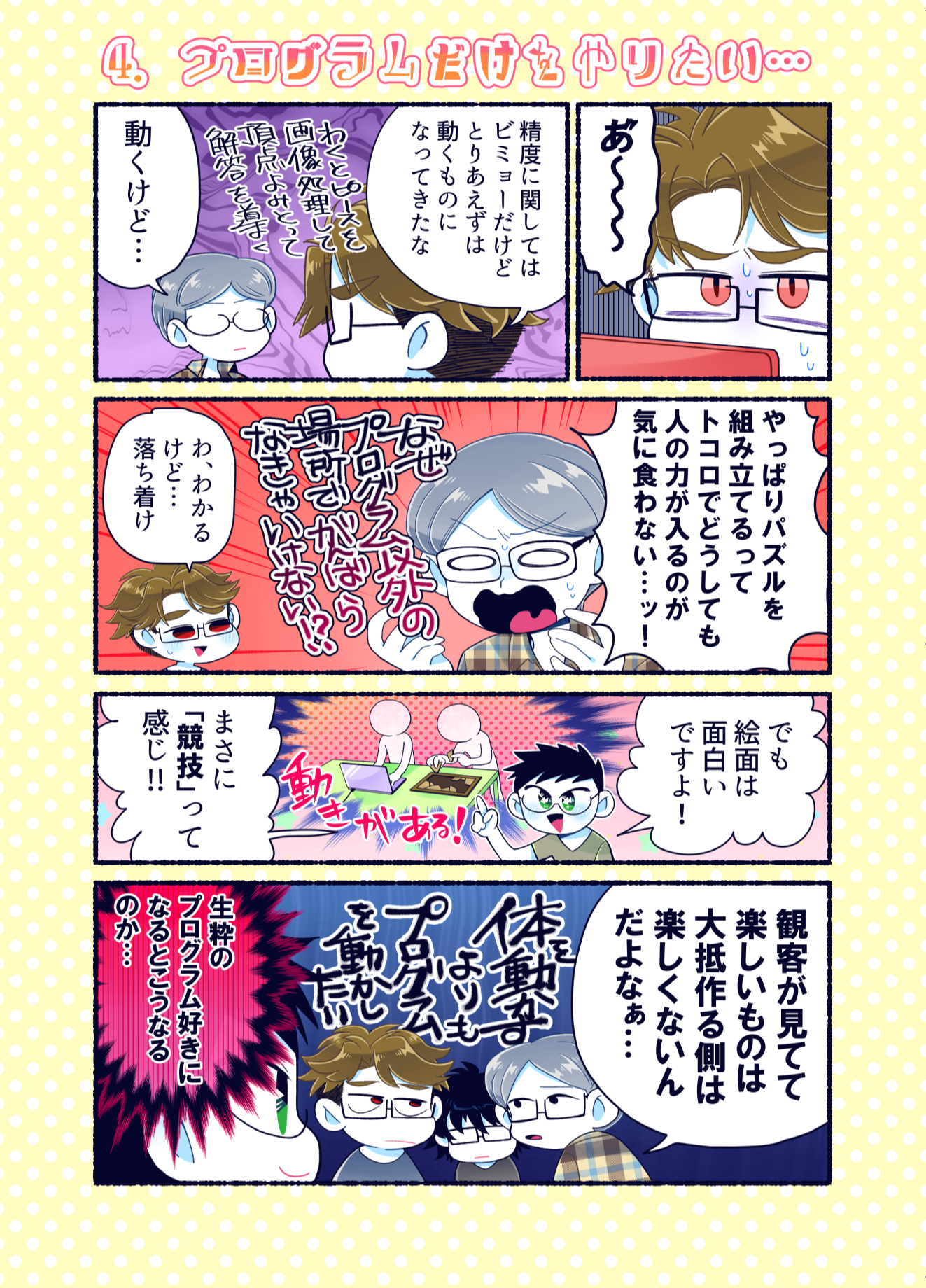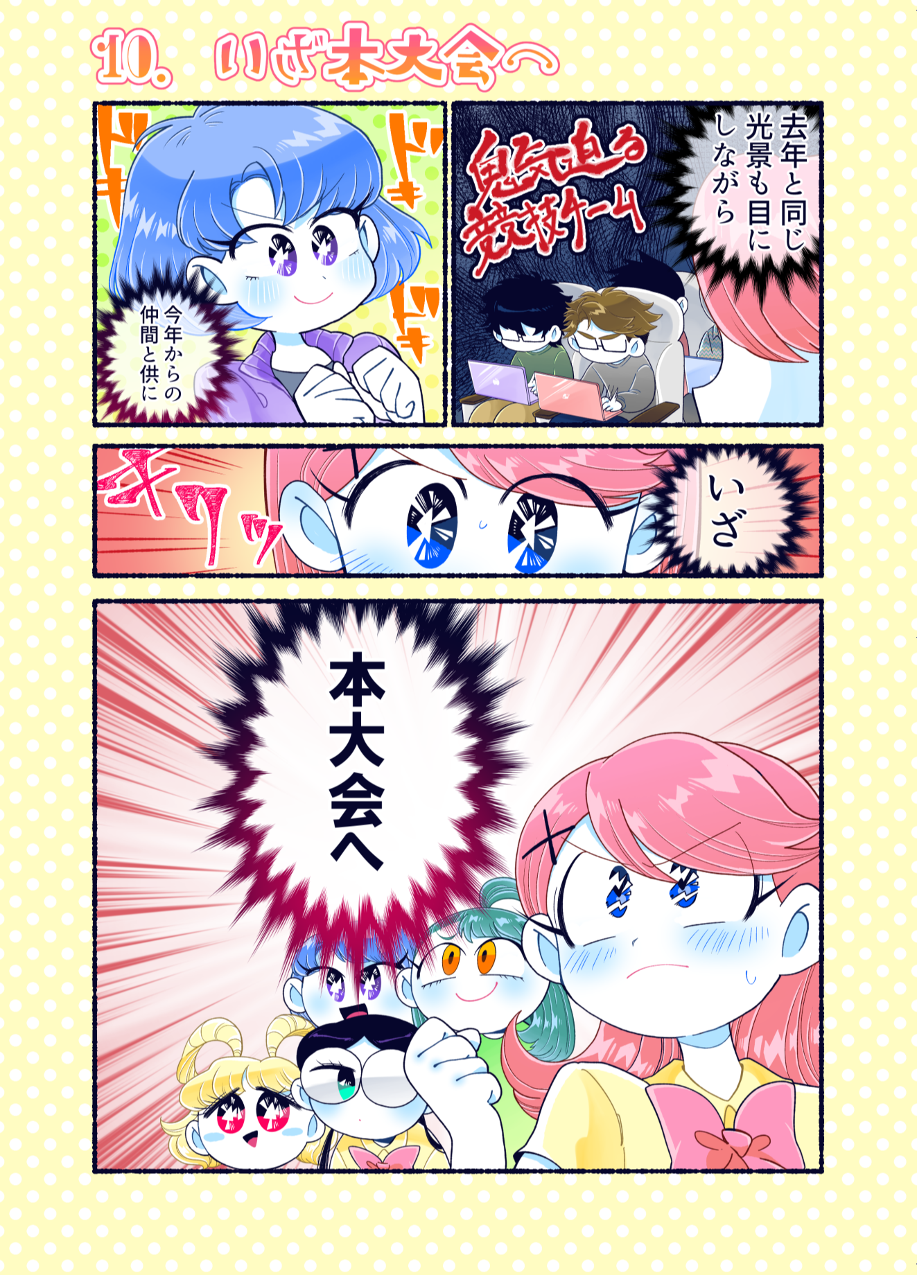 プロコン漫画 トップページ> プロコン漫画 > 第14話 限界!ラストスパート 第14話 限界!ラストスパート メッセージ 今回も学生への取材でたくさん面白いネタをいただきました。 「それゆけ限界高専生」というのは実際にスラック上で出て来た単語のようです。自分の作品をネタとして使われているのはすごくうれしい気分です。どんどん使ってください。 次回は本大会第2部です。