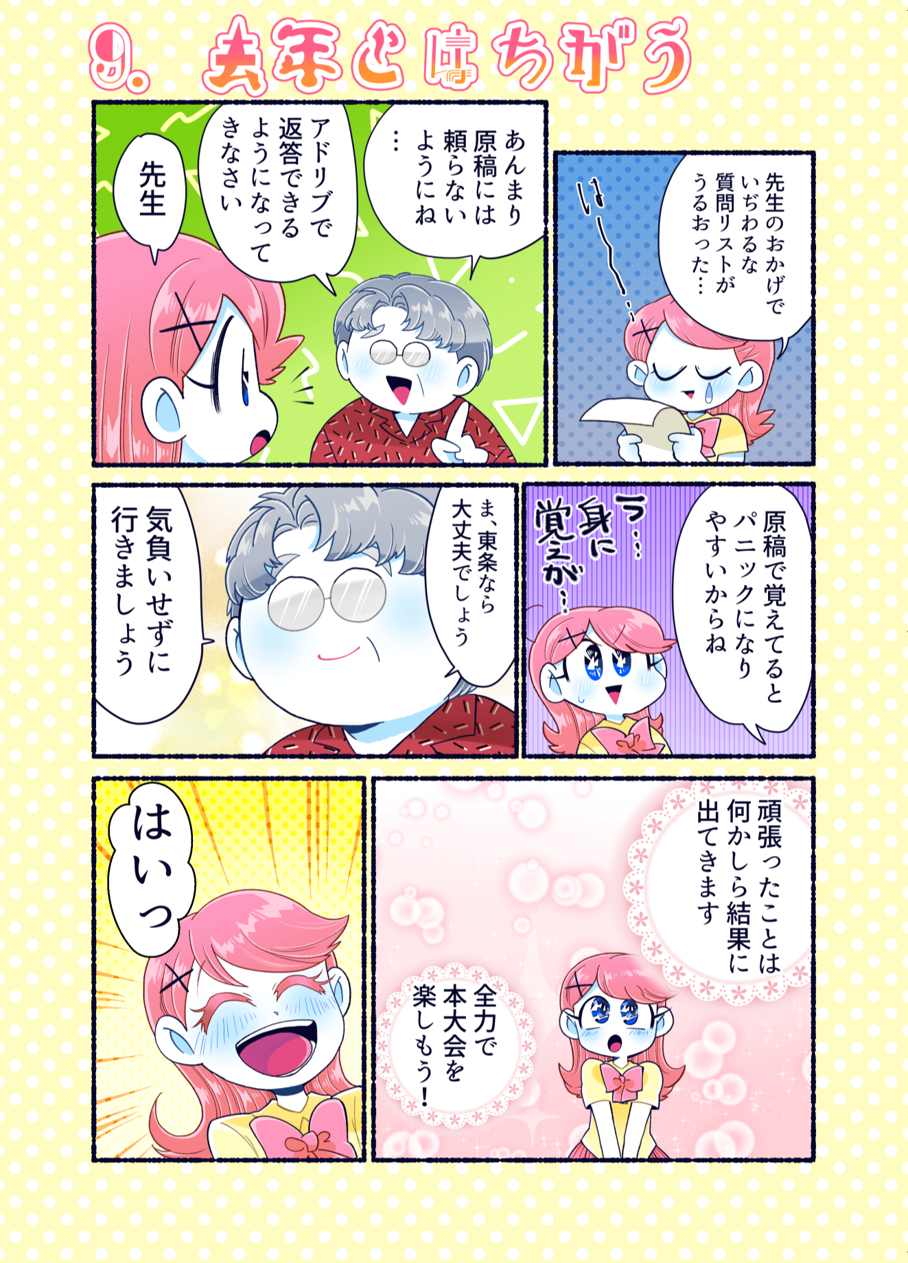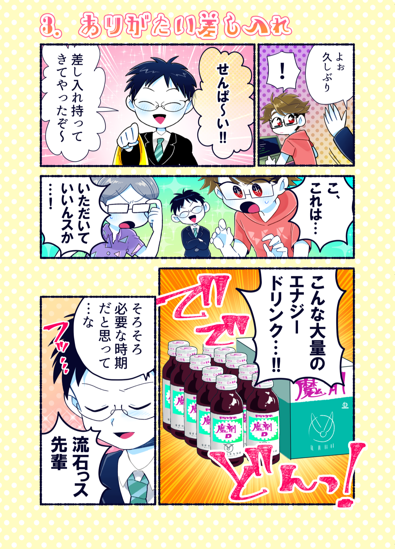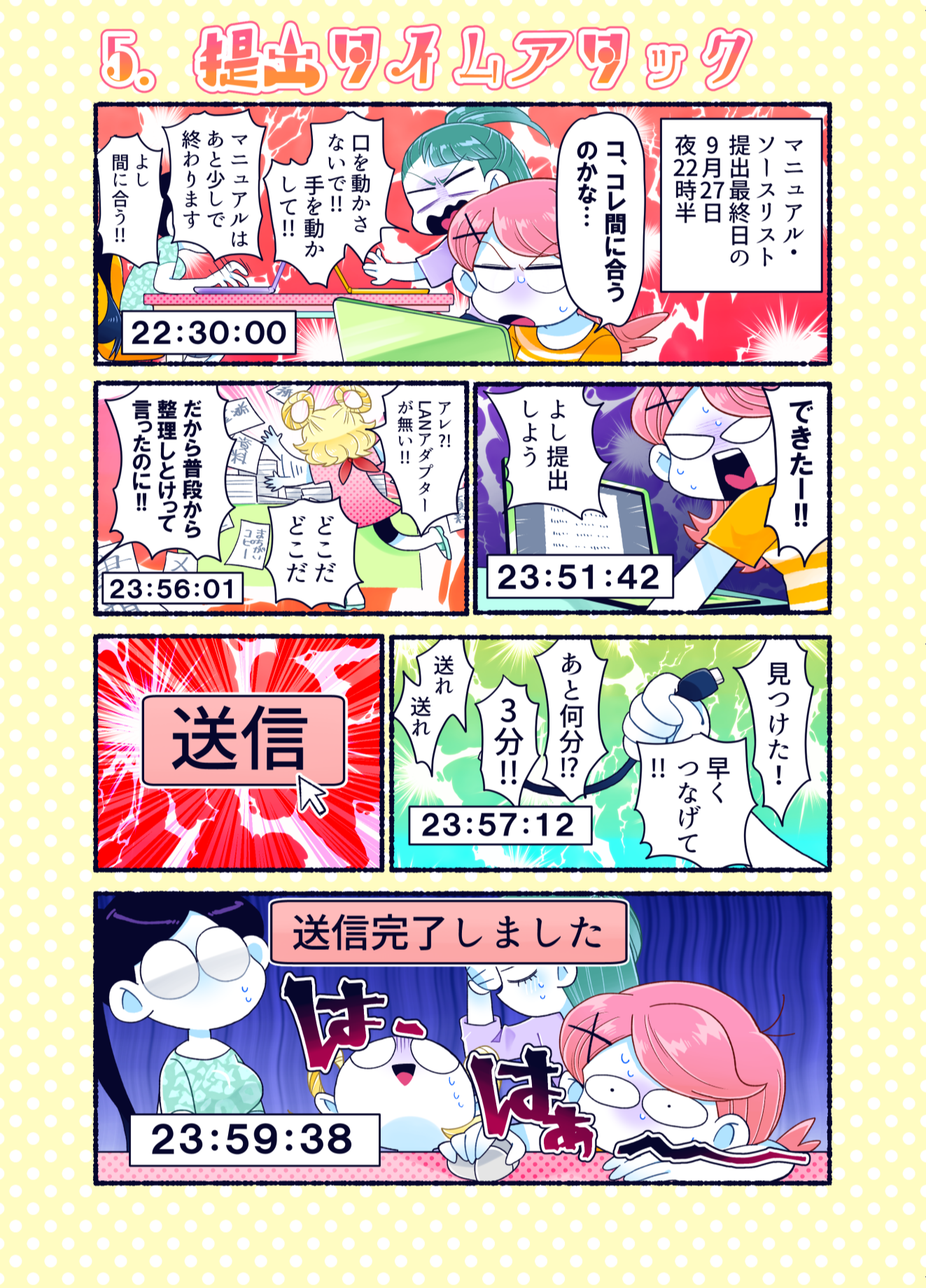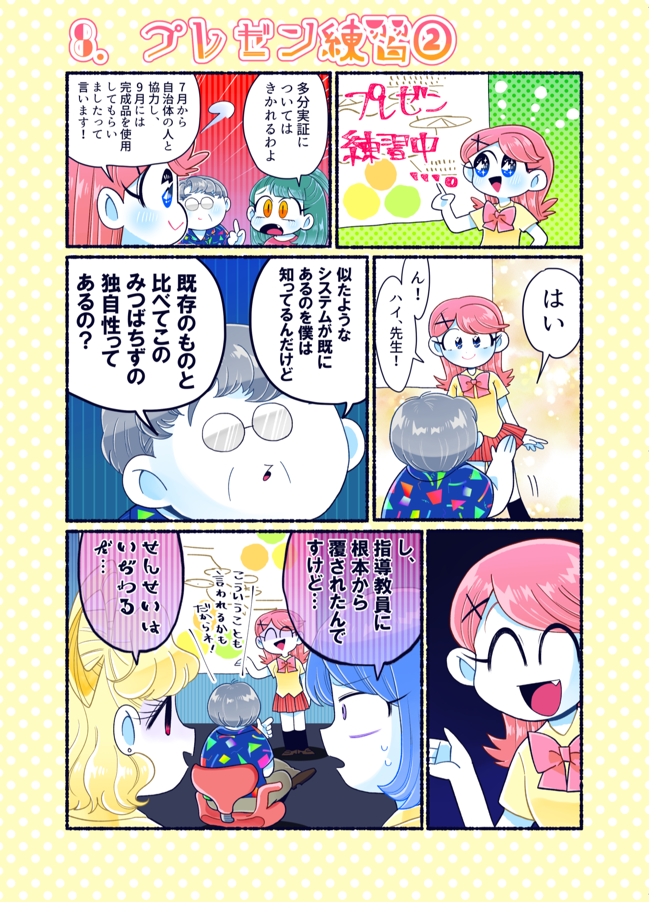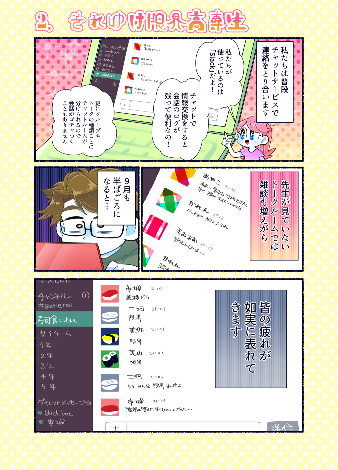プロコン漫画 トップページ> プロコン漫画 > 第14話 限界!ラストスパート 第14話 限界!ラストスパート メッセージ 今回も学生への取材でたくさん面白いネタをいただきました。 「それゆけ限界高専生」というのは実際にスラック上で出て来た単語のようです。自分の作品をネタとして使われているのはすごくうれしい気分です。どんどん使ってください。 次回は本大会第2部です。