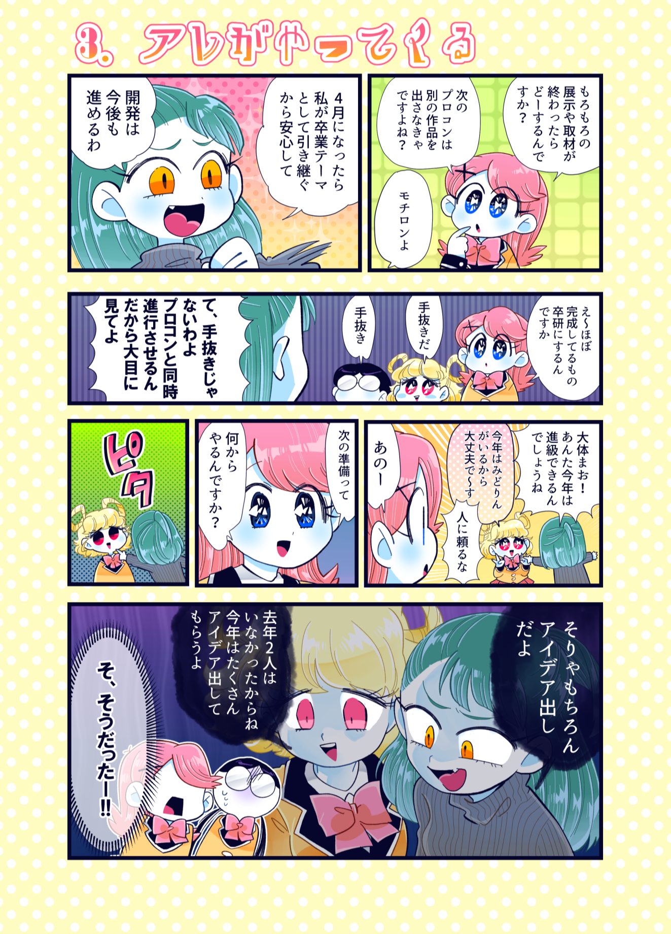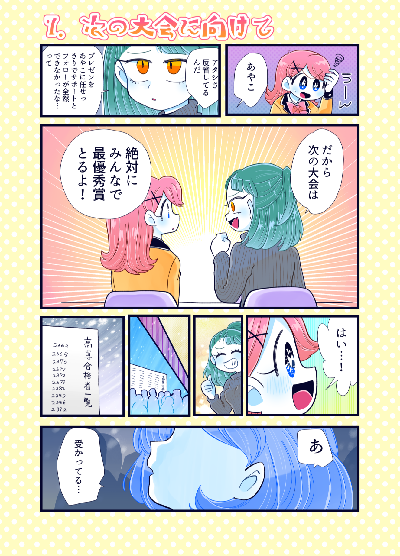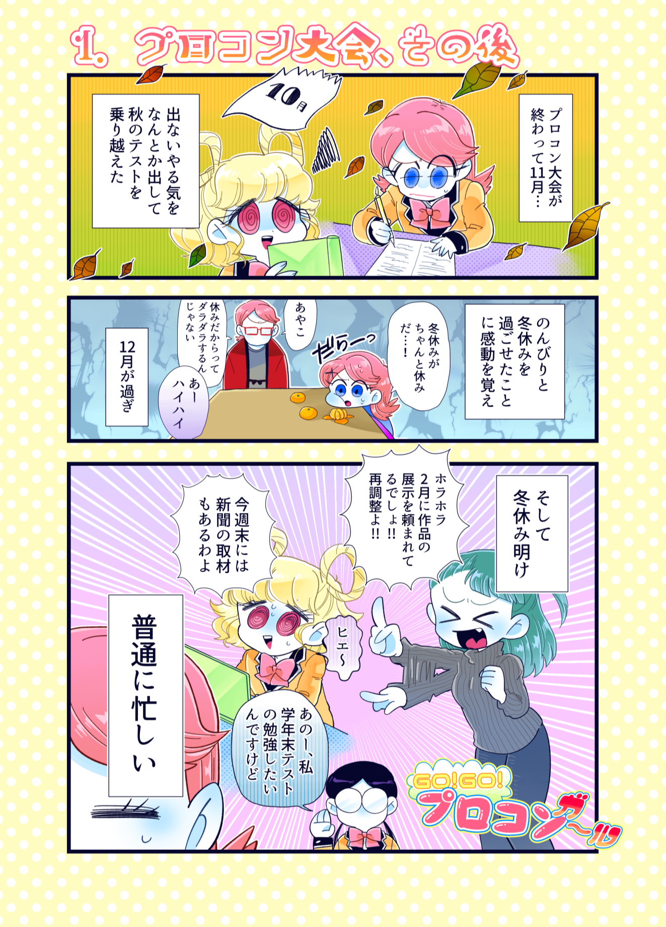 プロコン漫画 トップページ> プロコン漫画 > 第10話 次の大会に向けて 第10話 次の大会に向けて メッセージ 「お待たせしました。第1部終了です〜。 次回から新キャラも含めた第2部となります。 最後に出て来た青い髪のぼくっこがどんな感じで絡んでくるのかこうご期待! 10話もよろしくお願いします!」